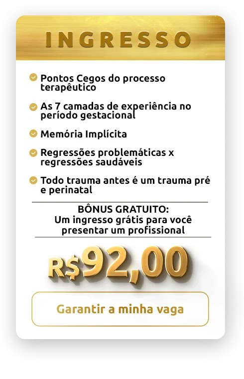 Todo feto possui a capacidade de armazenar experiências em memórias, logo tudo o que é vivenciado no útero materno, nascimento e pós nascimento criam padrões que são levados por toda vida. Se você é um terapeuta, você trabalha com traumas. Descobrir que todo trauma antes, na vida, foi um trauma pré e perinatal, vai te levar a um outro patamar de conexão e entendimento do seu cliente. Esse repertório e conhecimento vai transformá-lo em um profissional mais completo, com uma visão mais ampla e mais eficiente.